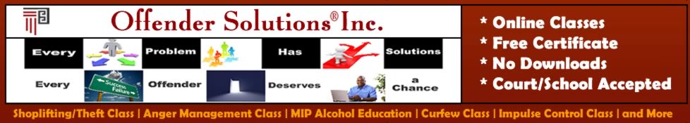 Is a school, court or probation officer requiring you to take a class? We offer a variety of 100% online classes. Yes, our classes are Offender Solutions® - the premier provider of Alabama online theft / shoplifting Classes! |